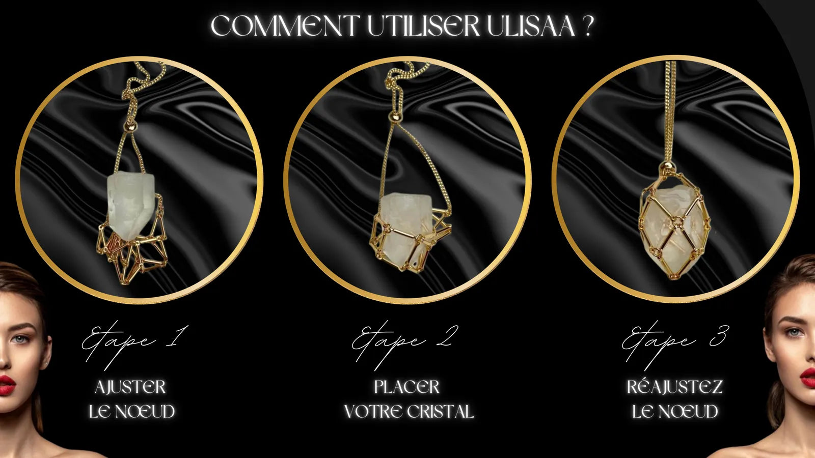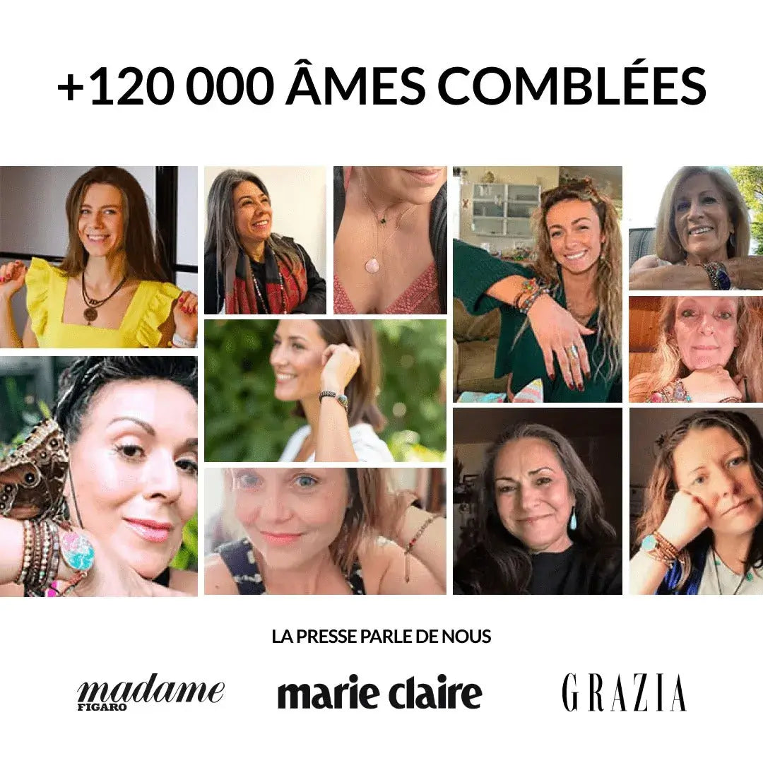 Rejoignez plus de 120 000 clientes satisfaites en France, Suisse et Belgique et profitez de l’énergie et du style uniques de votre collier porte-cristal.
